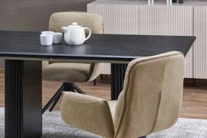 Masa extensibila BOLERO din MDF cu furnir natural stejar negru, otel vopsit negru 160-250x90xH78cm
