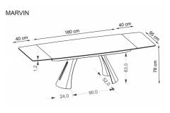 Masa extensibila MARVIN din otel sinterizat cu efect de marmura bordo, otel vopsit negru 180-260x95xH76cm