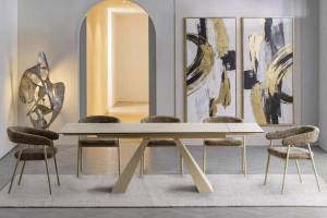Masa extensibila SALVADORE CERAMIC TRAVERTIN din ceramica travertin bej, sticla securizata, metal casmir 160-240x90xH77cm