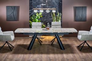 Masa extensibila VINCE din otel sinterizat cu efect de marmura maro, otel vopsit negru 180-238x85xH75cm