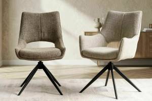 Scaun tapitat FINO I rotativ, functie de inclinare a spatarului, material textil cappuccino 56x60xH87cm, picioare negre