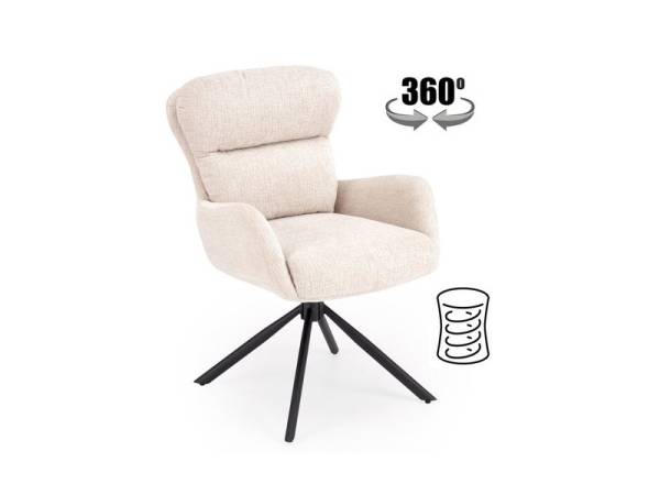 Scaun tapitat K593 rotativ, cu arcuri, material textil beige 55x69xH89cm, picioare negre