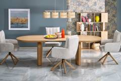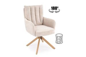 Scaun tapitat K594 rotativ, cu arcuri, material textil beige 60x64xH95cm, picioare nuanta lemnului