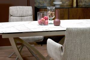 Scaun tapitat K596 CS rotativ, cu arcuri, material textil beige 66x66xH93cm, picioare casmir
