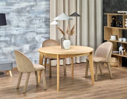 Scaun tapitat K597 rotativ, confortabil, material textil beige 70x67xH90cm, picioare negre