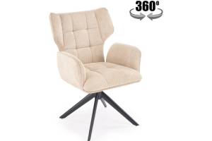 Scaun tapitat K601 rotativ, material textil beige 57x64xH90cm, picioare negre