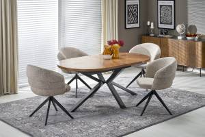 Scaun tapitat K604 rotativ, material textil beige 65x62xH85cm, picioare negre