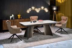 Scaun tapitat K611 rotativ, cu arcuri, material textil brown/ ecopiele brown 64x66xH96cm, picioare negre