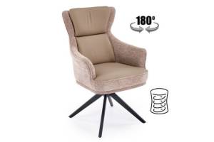 Scaun tapitat K611 rotativ, cu arcuri, material textil dark beige/ ecopiele cappuccino 64x66xH96cm, picioare negre