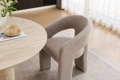 Scaun tapitat K612 material plusat bucle beige 56x54xH76cm, picioare tapitate beige