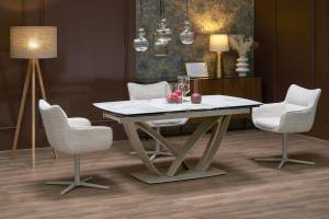 Scaun tapitat K614 rotativ, cu arcuri, material textil beige 60x63xH87cm, picioare casmir