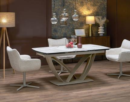 Scaun tapitat MN-SC design clasic, material textil cream 45x42xH96cm, cadru si picioare din lemn albe