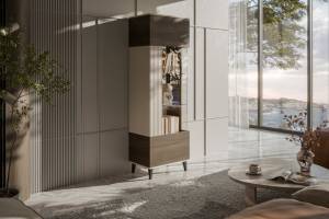 Vitrina inalta cu usa din sticla W-1 RANDOM 2 60x182x40cm casmir/ nuc