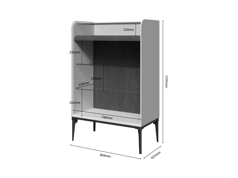 Vitrina cu 2 usi SOFFY 80x124x43cm Pepper White/ Stejar Melinga