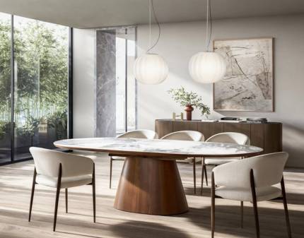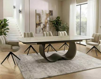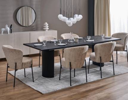 Masa extensibila SALVADORE CERAMIC SABBIA din ceramica in nuanta lemnului deschis, metal negru 160-240x90xH77cm