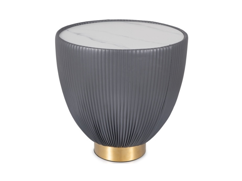 Masuta GRADO B din ceramica cu efect de marmura alba, ecopiele gri si otel auriu 47xH45cm