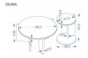 Set 2 masute DIUNA din MDF sinterizat furniruit cu efect de marmura alba/ nuc deschis 80xH36cm/ 41xH42cm
