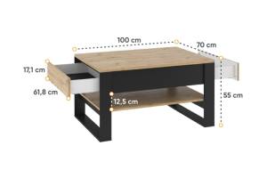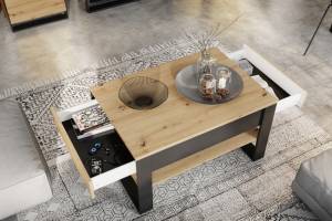 - masuta de cafea are 2 sertare pentru depozittare si o polita in partea de jos la spatiul deschis