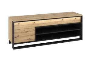 - comoda TV are 2 sertare, 1 usa si o polita neagra cu spatiu deschis