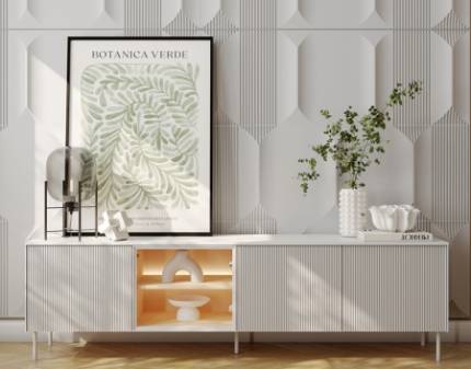 - decor bej cald lucios si nuc Pacific, detalii din sticla