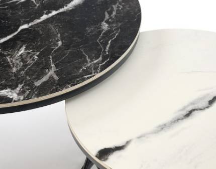 Set 2 masute OREO WHITE din MDF laminat cu efect de marmura alba, metal negru 53xH45cm / 43xH35cm