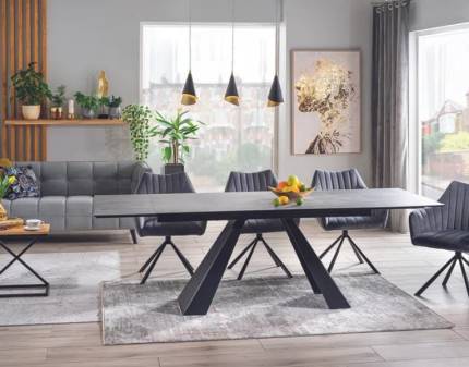 Scaun tapitat CHERRY VELVET catifea grey 57x58xH87cm, picioare negre