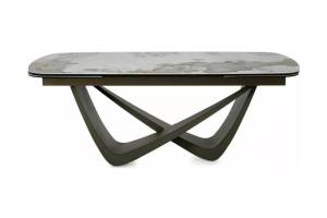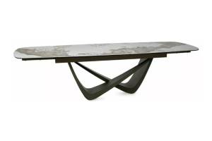 Masa extensibila MARANELLO CERAMIC PANDORO din sticla securizata si ceramica Pandoro alb lucios, metal cupru 200-290x90xH77cm