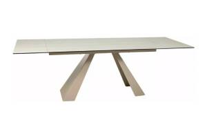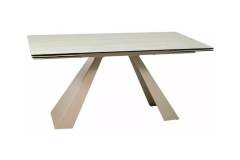 Masa extensibila SALVADORE CERAMIC TRAVERTIN din ceramica travertin bej, sticla securizata, metal casmir 160-240x90xH77cm