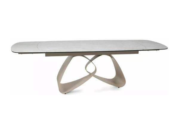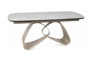 Masa extensibila VALENTINO CERAMIC din ceramica Taj Mahal bej lucios, sticla securizata si metal casmir 180-260x87xH75cm
