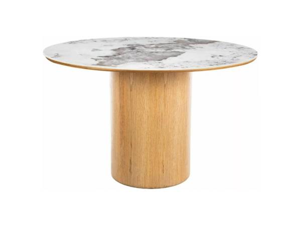 Masa RONDO PANDORO din MDF + ceramica Pandoro alb lucios, furnir natural nuc 120xH76cm