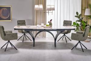 Scaun tapitat K596 rotativ, cu arcuri, material textil olive 66x66xH93cm, picioare negre