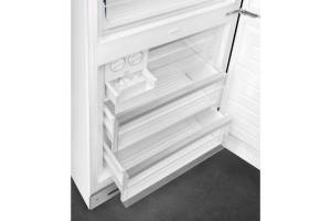 Combina frigorifica retro Smeg FAB32RWH5, in culoare alba, adauga un aer clasic si elegant oricarei bucatarii. Cu maner cromat, rafturi silver si display LED intern, aceasta ofera nu doar un design remarcabil, ci si tehnologii moderne: buton de congelare rapida, alarma temperatura si usi nereversibile pentru o utilizare eficienta si convenabila.