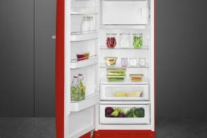 cu finisaj lucios si design rotunjit. Echipat cu maner extern fixat, sistem de racire Multiflow si tratament antibacterian, acest frigider imbina perfect estetica retro cu performanta moderna, fiind alegerea ideala pentru o bucatarie stilata si eficienta.