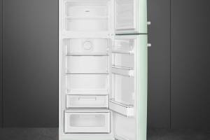Frigider retro Smeg FAB30RPG5, cu finisaj lucios si design rotunjit. Echipat cu maner extern fixat, iluminare LED, alarma acustica si vizuala pentru usa deschisa si garnitura antibacteriana, acest frigider ofera un mix perfect de stil retro si tehnologii moderne, aducand eleganta si eficienta in bucataria ta.