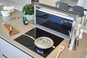 NB: Acest tip de hota poate fi instalata oriunde in bucatarie, insa ideal este sa fie amplasata intr-un corp tip insula. Motorul poate fi instalat sub blat. Puteti folosi hota atat pe recirculare cat si pe evacuare. In modul evacuare tubulatura trebuie trasa pe sub podele, pe sub dulapuri sau prin spatele dulapurilor. Este prin urmare esential sa luati in calcul acest aspect inainte de achizitie! Lungimea tubulaturii va afecta performantele de evacuare. Daca lungimea tubulaturii este prea mare sau daca sunt prea multe coturi va sfatuim sa folositi hota pe recirculare.