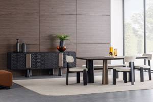 Setul de 6 scaune KLEIN combina eleganta si confortul, fiind realizate din MDF, PAL, metal si material textil de calitate. Designul modern si versatil se potriveste perfect in orice spatiu, oferind functionalitate si stil pentru o amenajare contemporana.
