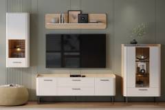 Pretul afisat nu include comoda TV, coprurile suspendate, masuta, montajul, alte piese de mobilier si accesoriile din imaginea de prezentare a produsului.