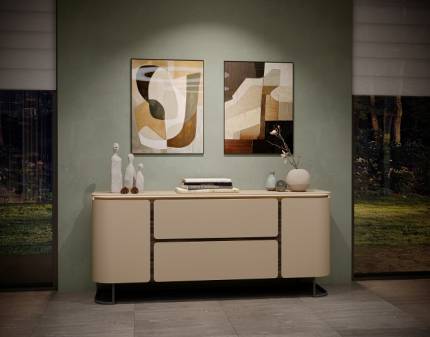 Comoda cu 2 usi si 2 sertare AURA 182x79x46cm mocca/ stejar Baroc, picioare antracit