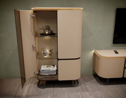 Vitrina cu sticla AURA 83x140x46cm mocca/ stejar Baroc - sticla parsol maro, picioare antracit