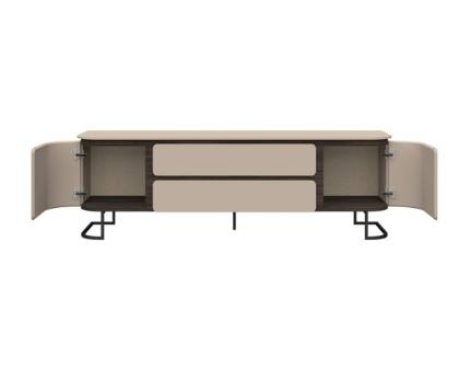Comoda TV cu 2 usi si 2 sertare AURA 210x58x46cm mocca/ stejar Baroc, picioare antracit