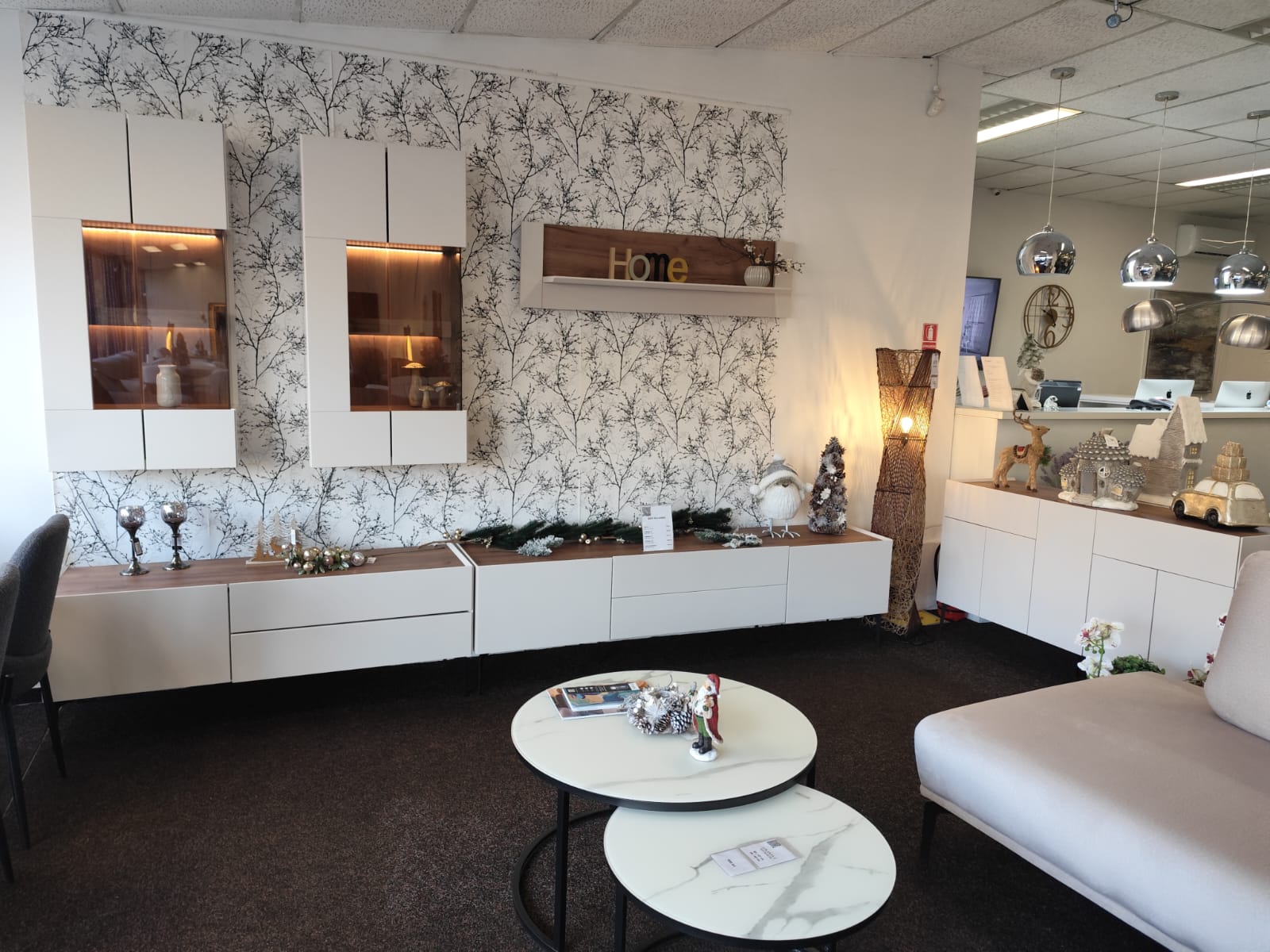 Pretul afisat nu include comoda din lateral, masuta, panoul de pe perete, montajul, alte piese de mobilier si accesoriile din imaginea de prezentare a produsului.