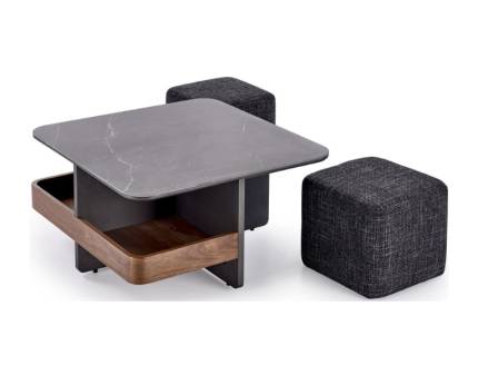 Masuta STELLA B din ceramica Spaniola Vulcano negru lucios, metal cupru 75x75xH43cm