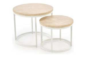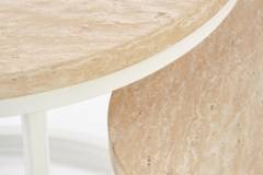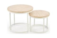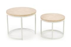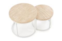 Set 2 masute OREO TRAVERTIN din MDF furniruit travertin, otel vopsit in camp electrostatic alb 53xH45cm / 43xH35cm