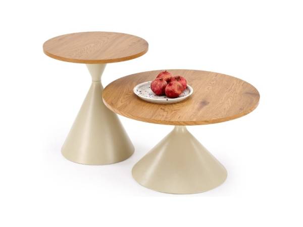 Set 2 masute PILAR din MDF furniruit travertin, otel vopsit in camp electrostatic casmir 70xH40cm 50xH55cm