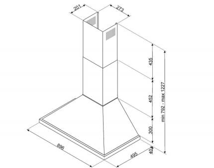 Hota semineu Smeg KSED95NEE, 90 cm, negru