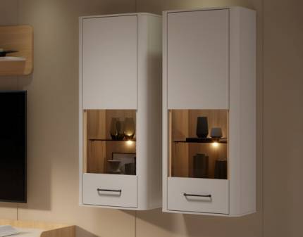 Vitrina inalta AIR 50x202x41cm Pepper White/ stejar Furneo - sticla gri Parsol, cadru, picioare si manere Antracit